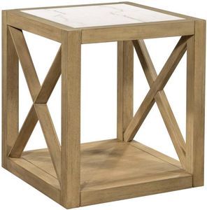 The inset white Carrara marble veneer top adds a touch of luxury, while the open, airy design makes it an ideal match for contemporary and traditional decor alike. The X-shaped end panels offer a unique visual accent, giving the piece a refined and elegant look. With practical functionality and elegant design, this end table is perfect for elevating your home's style.