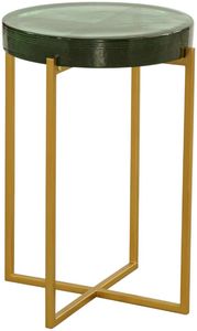 The Marilee Accent Table in green brings a touch of modern elegance with its eye-catching design. The rich green cast glass tabletop offers a subtle pop of color, beautifully contrasting with the sleek, brushed gold geometric base.Read More