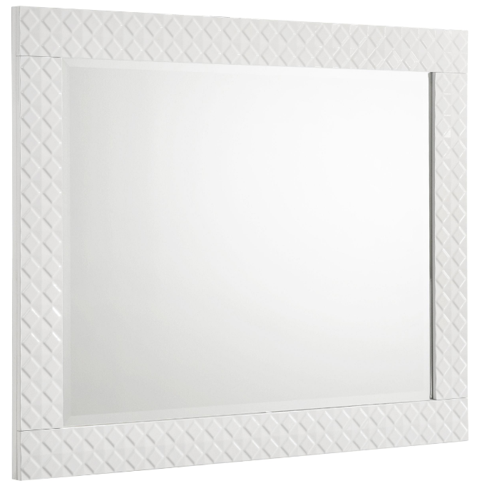 Complete your dresser with this elegant mirror, designed to enhance the modern aesthetic of your bedroom. The high gloss finish and 3-dimensional diamond tile emboss perfectly complement the dresser, creating a cohesive look. This mirror features a sturdy frame crafted from solid materials, ensuring both style and durability.Read More