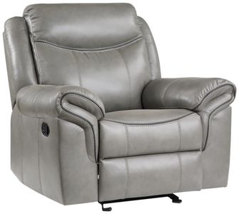 The glider reclining chair features a manual motion reclining mechanism which operates with the pull of a side-mounted tab, that once engaged, take you from seated to reclined in an easy motion.