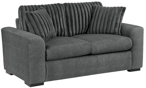 Create a cozy and stylish seating area with this two-tone dark gray loveseat, featuring a unique blend of textured microfiber and inviting corduroy fabrics. Built with a sturdy plywood frame, high-density foam padding over pocket coils, and reversible cushions, this loveseat offers both durability and exceptional comfort for two.Read More