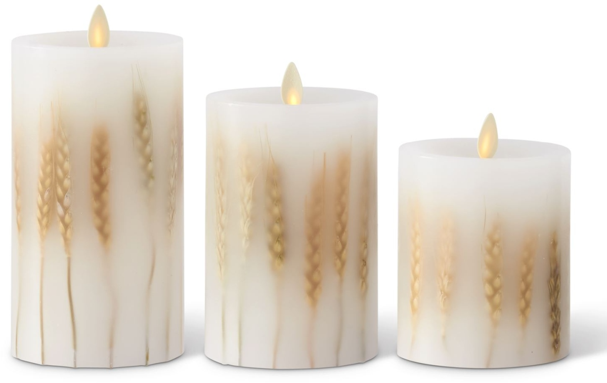 K & K Interiors Set of 3 White Wax luminara Slim Indoor Pillar Candles with Remote made from wax, embedded, and electronic.Read More