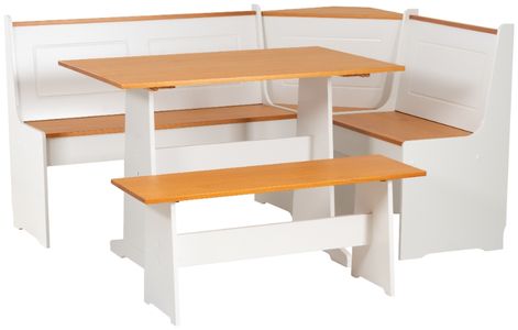 This 3-piece breakfast nook set is a smart, cozy solution for creating a welcoming dining space in any corner. The solid MDF frames are painted white for a crisp, modern look, while the table and bench tops are crafted from solid pine and finished in a natural varnish that highlights the woodgrain.Read More