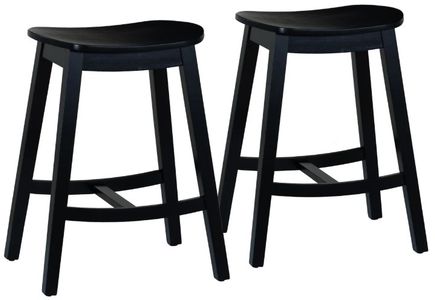 Bring a timeless look to your kitchen or home bar area with this pair of streamlined counter stools. Constructed from solid wood and finished in a sleek black stain, these stools feel right at home whether placed amongst modern, farmhouse, or transitional decor.Read More