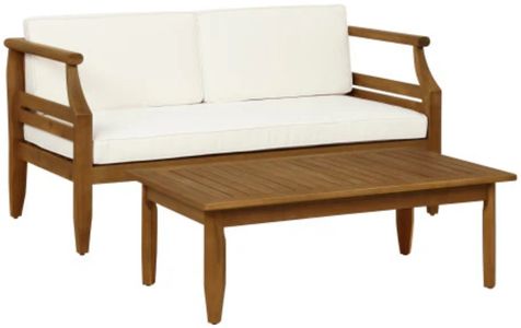 Balancing clean lines with curated comfort, this 2-piece outdoor set brings an elevated take to casual lounging. The loveseat features a solid acacia wood frame with gently arched arms and a warm, natural finish that draws out the wood’s organic character.Read More