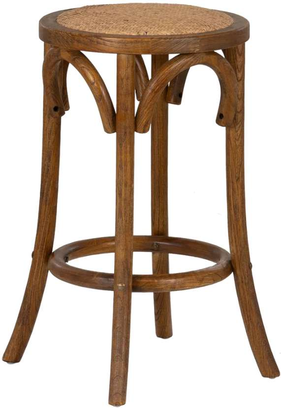Arched supports and flared legs create a light, graceful silhouette, while the woven rattan seat introduces an artisanal charm with tactile contrast. A rounded footrest adds comfort and support without disrupting the stool’s clean, open silhouette. Designed to slide easily beneath a counter, it brings quiet, refined character and timeless ease to kitchen seating.