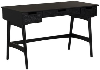 Discover our sophisticated black desk, meticulously crafted to elevate your workspace with style and functionality. Constructed from a high-quality blend of rubber wood and plywood, this desk offers durability and reliability for daily tasks. The front panel showcases a unique rattan design, adding a touch of elegance to its sleek black finishRead More