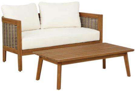 Loveseat and Cocktail Table Included: This 2-piece set includes a matching loveseat and slatted cocktail table, creating a ready-to-enjoy seating area. Perfect for patios, balconies, or rooftops that need an instant lounge setup