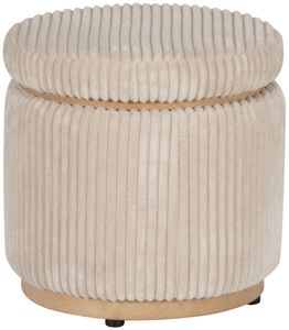 The top lifts reveal ample storage space, perfect for stashing blankets, pillows, or other essentials to keep your home tidy. Upholstered in soft, durable corduroy fabric made from 100% polyester, it provides a cozy seat with a seat height of 18". The plywood frame ensures durability, while the wooden block base, finished in a natural stain, adds a sophisticated touch. With a weight capacity of 300 lbs, this ottoman combines practicality and style effortlessly.
